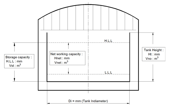 | Low Liquid Level | LLL = | 2450 | mm | 8.038 | ft | 25168 | mm | 82.572 | ft | |
