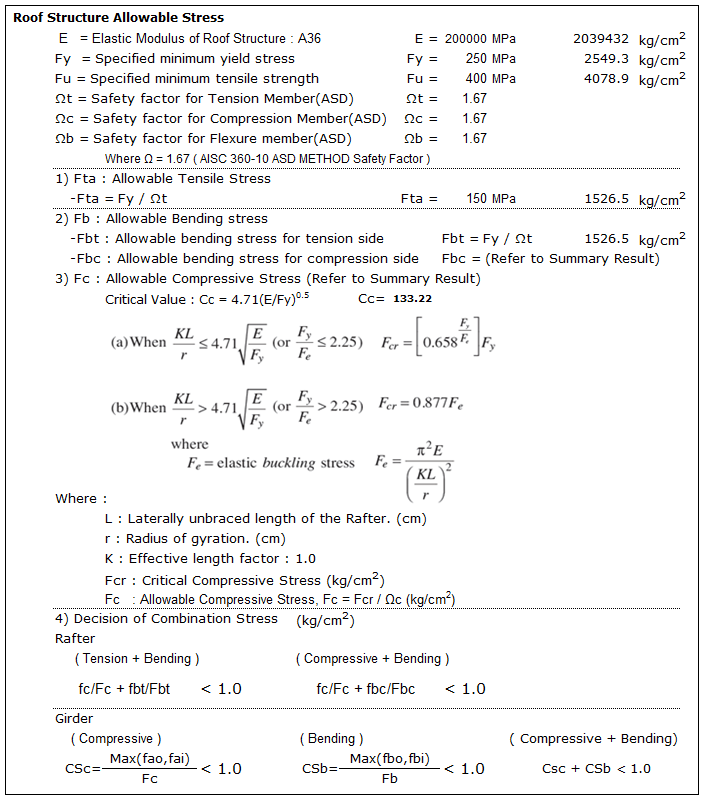 | Roof Structure Design Load, Wr = Max[DL+Pv+0.4*Max(Lr, Sn), DL+0.4*Pv+Max(Lr,Sn)] x 5% Up | Wr = | 288.0 | kPa | 2.824 | kPa |