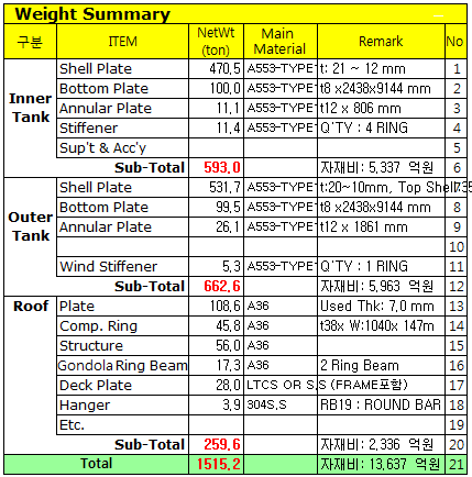 | ¨ì | TANK BOTTOM "C" | DRY SAND (TOP) | t 50 | 46.600 | 48.000 | 104.0 | 1520.0 | 7,905 | |