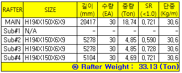 | #4 | Main | H194X150X6X9 | 31.9 | 2228 | 9.63 | 9.63 | 8.358 | 30 | 510.43 | 30.6 | 4685.8 |