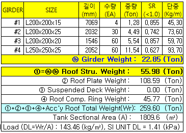 | Tank ROOF TOTAL WEIGHT | Wtotal = | 259600 | kg | 259600 | kN |