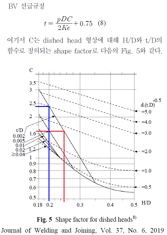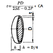 | 6.327 | 4.60 | 0.9 | 0.77 | 8.00 | ![]() UG-32 FORMED HEADS, AND SECTIONS, PRESSURE ON CONCAVE SIDE (c) Ellipsoidal Heads With ts/L ¡Ã 0.002 (d) Torispherical Heads With t s /L ¡Ã 0.002. À§ ¼ö½ÄÀ» »ç¿ëÇϱâ À§ÇÑ Çʼö Á¶°ÇÀÓ ( 2:1 Ellipsoidal head and Dish Head ÇʼöÁ¶°Ç ÀÓ ) ts / L ¡Ã 0.002 tsMin = 0.002 * L + CA = 10.35 mm | ||||||||||||||||||||||||||||||||||||||||||||||||||||||||||||||||||||||||||||||||||||||||||||||||||||||||||||||||