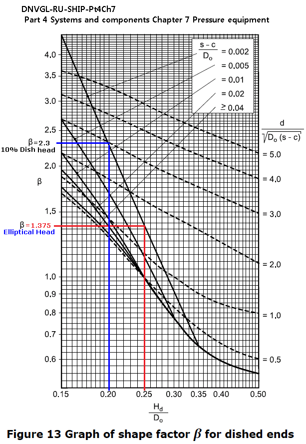 | 24 | [DNV-GL] Hemi-Spherical Head Thk (For Vacuum ) Pc=2.4*Et*(t-c/Ro)©÷/ 3.7 [DNV-GL Pt4-Ch7] | t_HeadPe = | 3.02 | 3.47 | 4.04 | 4.15 | 5.0 | 5.28 | 5.28 | 5.42 | 5.56 | 5.85 | 6.41 | 6.7 | 6.98 | 7.12 | 7.55 | 7.83 | 7.55 | 7.83 | mm |