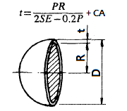 | 15 | [ASME] Hemi-Spherical Head Thickness | t_HHead = | 2.71 | 3.13 | 3.65 | 3.76 | 4.57 | 4.85 | 4.85 | 4.99 | 5.13 | 5.41 | 5.98 | 6.27 | 6.56 | 6.71 | 7.16 | 7.46 | 7.16 | 7.46 | mm |