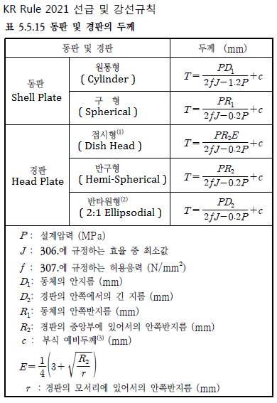 | 5 Æí ±â°üÀåÄ¡ / 5 Àå º¸ÀÏ·¯ ¹× ¾Ð·Â¿ë±â 309. µ¿ÆÇ ¹× °æÆÇ 1. µ¿ÆÇ ¹× °æÆÇÀÇ µÎ²²´Â Ç¥ 5.5.15ÀÇ ½Ä¿¡ ÀÇÇÑ ¼Ò¿äµÎ²² ÀÌ»óÀ̾î¾ß Çϸç, Áö¸§, ¾Ð·Â, ¿Âµµ, Àç·á µîÀ» °í·ÁÇÏ¿© ¿ì¸® ¼±±ÞÀÌ Æ¯º°È÷ ½ÂÀÎÇÑ °æ¿ì¸¦ Á¦¿ÜÇϰí 5 mm ÀÌ»óÀ̾î¾ß ÇÑ´Ù. ´Ù¸¸, ¸ðµç ¹Ý±¸Çü °æÆÇÀ» Á¦¿ÜÇÑ °î¸é°æÆÇÀǵβ²´Â ±× °æÆÇÀÌ ºÎÂøµÈ µ¿ÆÇÀÌ ÀÌÀ½¸Å ¾ø´Â °æ¿ìÀÏ ¶§ÀÇ ±× µ¿ÆÇÀÇ ¼Ò¿äµÎ²² ÀÌ»óÀ̾î¾ß ÇÑ´Ù. 2. º¸°À» ÇÊ¿ä·Î ÇÏ´Â ±¸¸ÛÀÌ ÀÖ´Â °æ¿ìÀÇ °æÆÇÀÇ ¼Ò¿äµÎ²²´Â ´ÙÀ½ °¢È£¿¡ µû¸¥´Ù. (1) ±¸¸ÛÀÇ º¸°À» 115.ÀÇ 2Ç׿¡ ÀÇÇÑ °æ¿ì¿¡´Â Ç¥ 5.5.15¿¡ µû¸¥´Ù. (2) ¸ÇȦ ¶Ç´Â ÃÖ´ëÄ¡¼ö°¡ 150 mm ¸¦ ³Ñ´Â ±¸¸ÛÀ¸·Î¼ ±× ÁÖÀ§¸¦ 115.ÀÇ 6Ç׿¡ ±ÔÁ¤ÇÏ´Â Ç÷£ÁöÇüÀ¸·Î º¸°ÇÏ¿´À»°æ¿ì¿¡´Â ´ÙÀ½¿¡ µû¸¥´Ù. (°¡) Á¢½ÃÇü ¶Ç´Â ¹Ý±¸Çü °æÆÇ : Ç¥ 5.5.15¿¡ µû¶ó¼ »êÁ¤µÈ °ª¿¡ ±×ÀÇ 15% (3 mm ¹Ì¸¸ÀÇ °æ¿ì¿¡´Â 3 mm) ÀÌ»óÀÇ °ªÀ» ´õÇÑ µÎ²² ÀÌ»óÀ¸·Î ÇÏ¿©¾ß ÇÑ´Ù. ÀÌ °æ¿ì¿¡ °æÆÇÀÇ Á߾Ӻο¡ ÀÖ¾î¼ÀÇ ¾ÈÂʹÝÁö¸§ÀÌ µ¿Ã¼ÀÇ ¾ÈÁö¸§ÀÇ80% ¹Ì¸¸ÀÎ °æ¿ì¿¡´Â °æÆÇÀÇ Á߾Ӻο¡ ÀÖ¾î¼ÀÇ ¾ÈÂʹÝÁö¸§À» µ¿Ã¼ÀÇ ¾ÈÁö¸§ÀÇ 80% ·Î ÇÏ¿© °è»êÇÏ¿©¾ß ÇÑ´Ù. ¶ÇÇÑ, µÎ °³ÀÇ ¸ÇȦÀÌ ÀÖ´Â °æÆÇÀÇ µÎ²²¸¦ À̿Ͱ°ÀÌ Á¤ÇÏ¿´À» °æ¿ì¿¡´Â µÎ °³ÀÇ ¸ÇȦ»çÀÌÀÇ °Å¸®°¡ °æÆÇ ¹Ù±ùÁö¸§ÀÇ 1/4 ÀÌ»óÀ̾î¾ß ÇÑ´Ù. (³ª) ¹ÝŸ¿øÇü °æÆÇ : Ç¥ 5.5.15¿¡ µû¶ó¼ °è»êÇ쵂 ÀÌ °æ¿ìÀÇ R Àº µ¿Ã¼ÀÇ ¾ÈÁö¸§ÀÇ 80% ·Î Çϰí, E´Â 1.77 ·Î ÇÑ´Ù. | ![]() |
