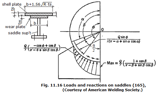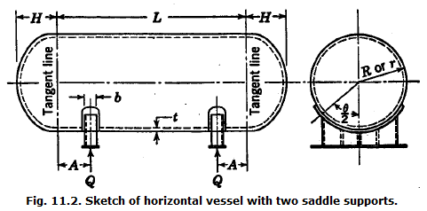 | M11 = 6⋅Q/12⋅[(8⋅A⋅H + 6⋅A©÷ - 3⋅R©÷ + 3⋅H©÷) / (3⋅L+4⋅H)] | M11 = | 291340722 | N-mm | at saddle support |