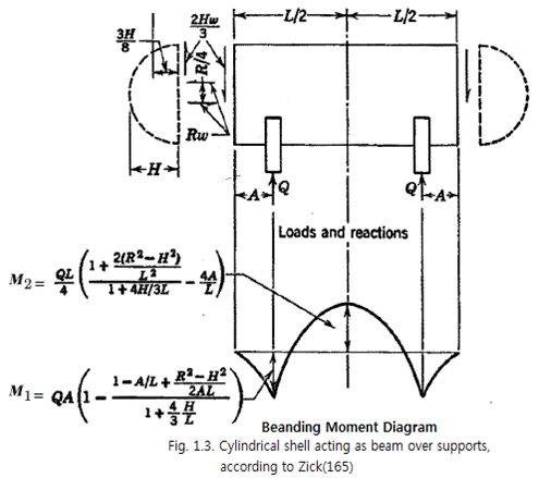 | M22 = 3⋅Q/12⋅[(3⋅L©÷+6⋅R©÷-6⋅H©÷-12⋅A⋅L-16⋅A⋅H) / (3⋅L+4⋅H)] | M22 = | 2736292469 | N-mm | at shell center, Shell Áß°£ÁöÁ¡ |