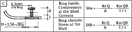 a) Ring Inside. Compression at the Shell Governs S6a = -(K9⋅Q / A) - [(K10⋅Q⋅R⋅C) / I] | S6a = | -10.57 | MPa | < 1.0¡¤S (213 MPa) OK |